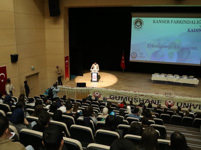 Üniversitemiz Dr. Mustafa Çalık Kongre ve Kültür Merkezi’nde gerçekleştirilen Panelde, kanserin psikososyal boyutu, meme, serviks ve kolon kanseri farkındalıklarına dikkat çekildi.