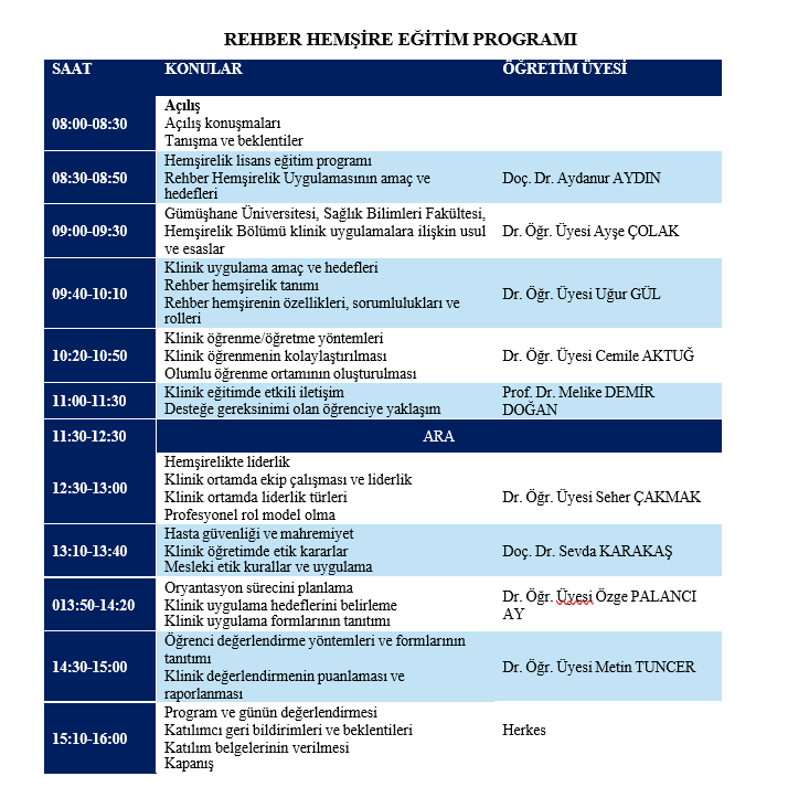 Programın amacı; hemşirelik lisans öğrencilerine klinik uygulama alanlarında rehberlik edecek hemşirelere, etkili klinik öğretim, profesyonel rehberlik ve öğrenci değerlendirme süreçlerine ilişkin bilgi, beceri ve tutum kazandırmaktır.